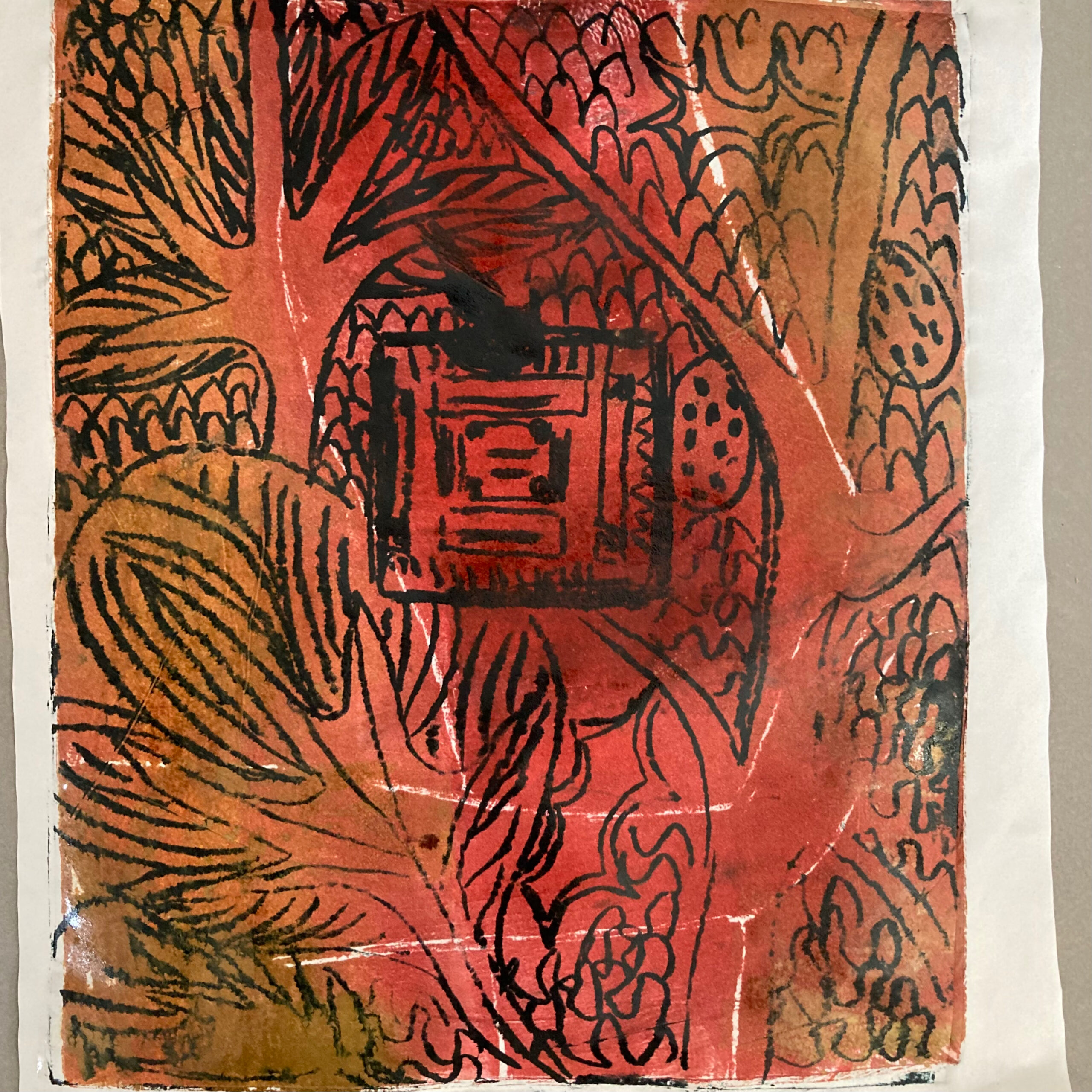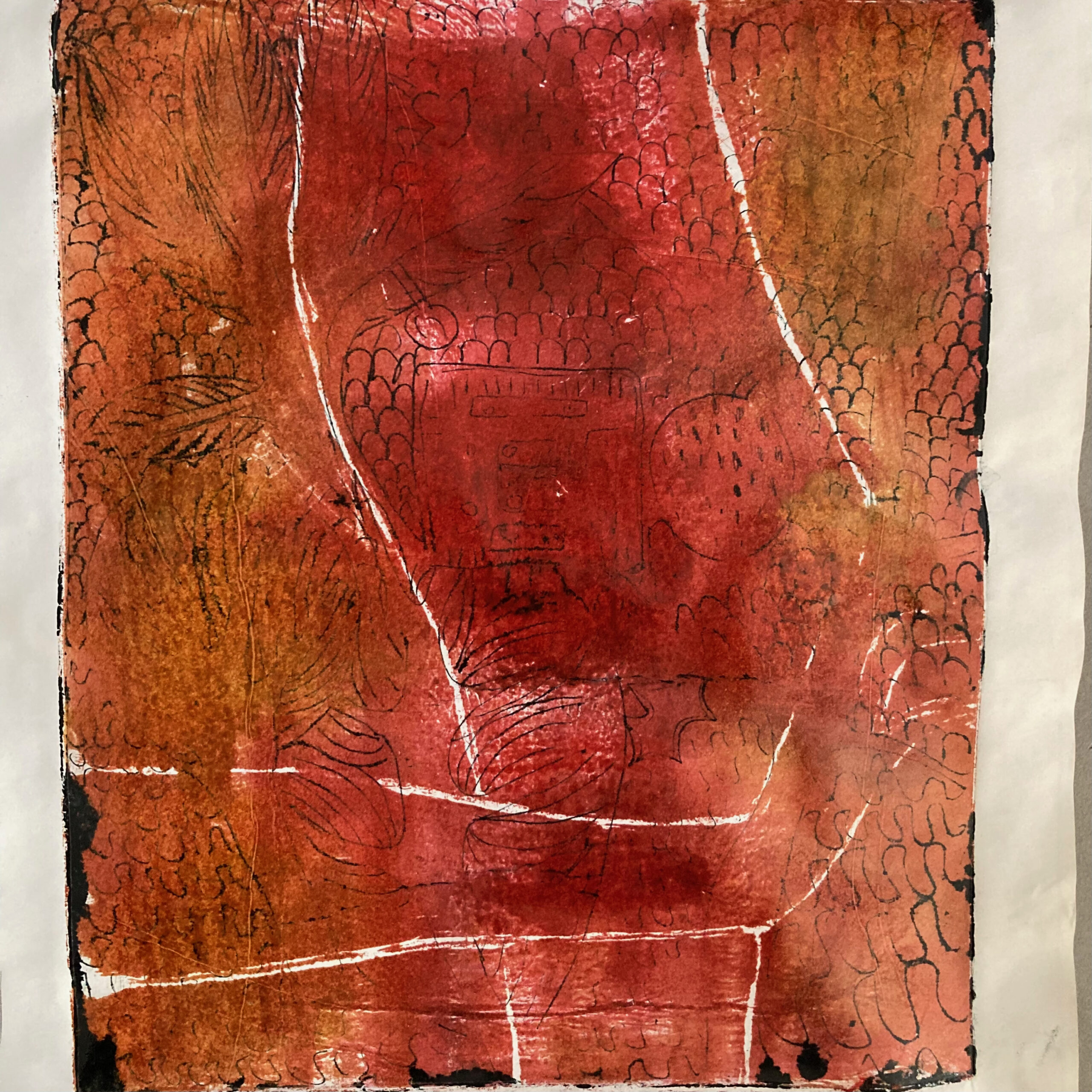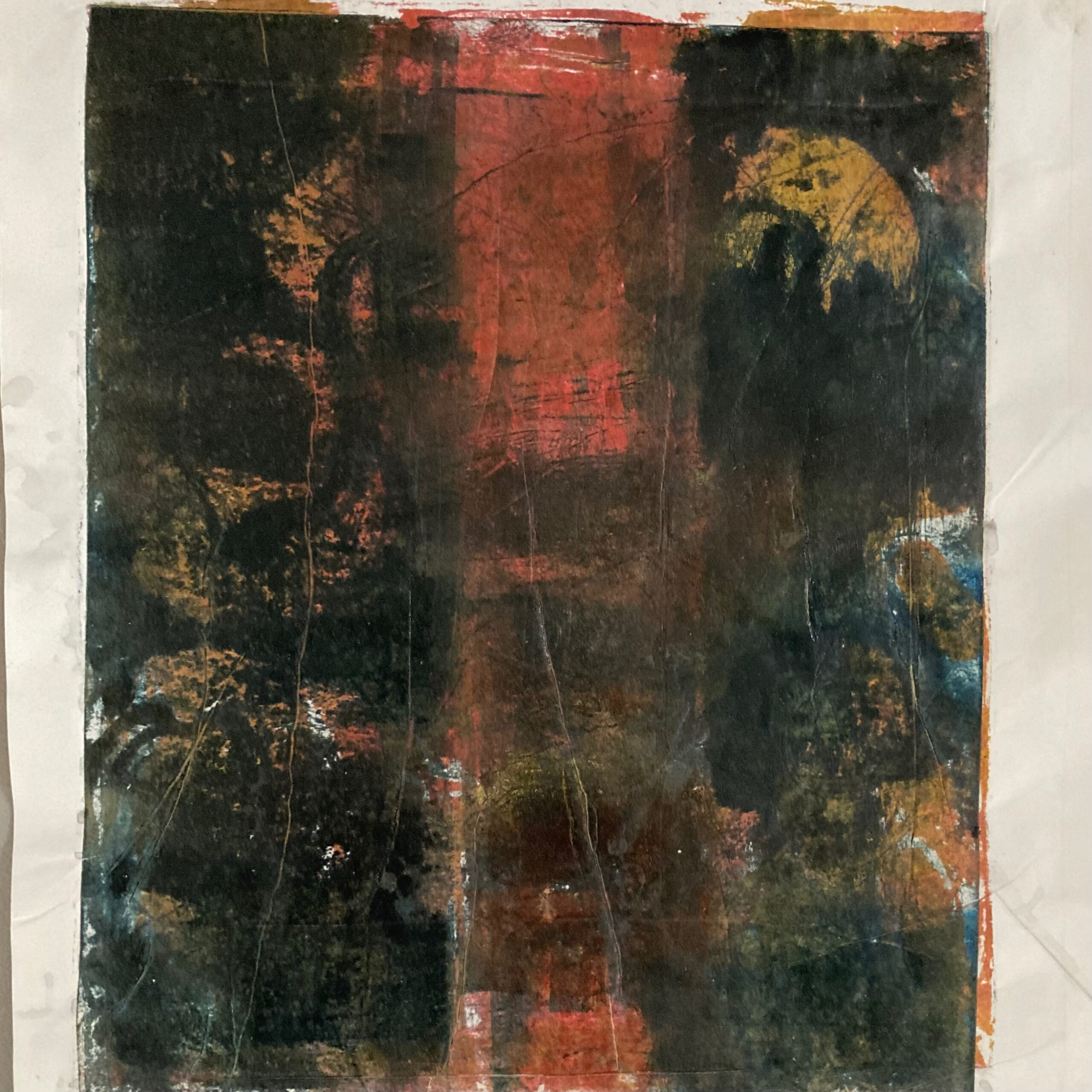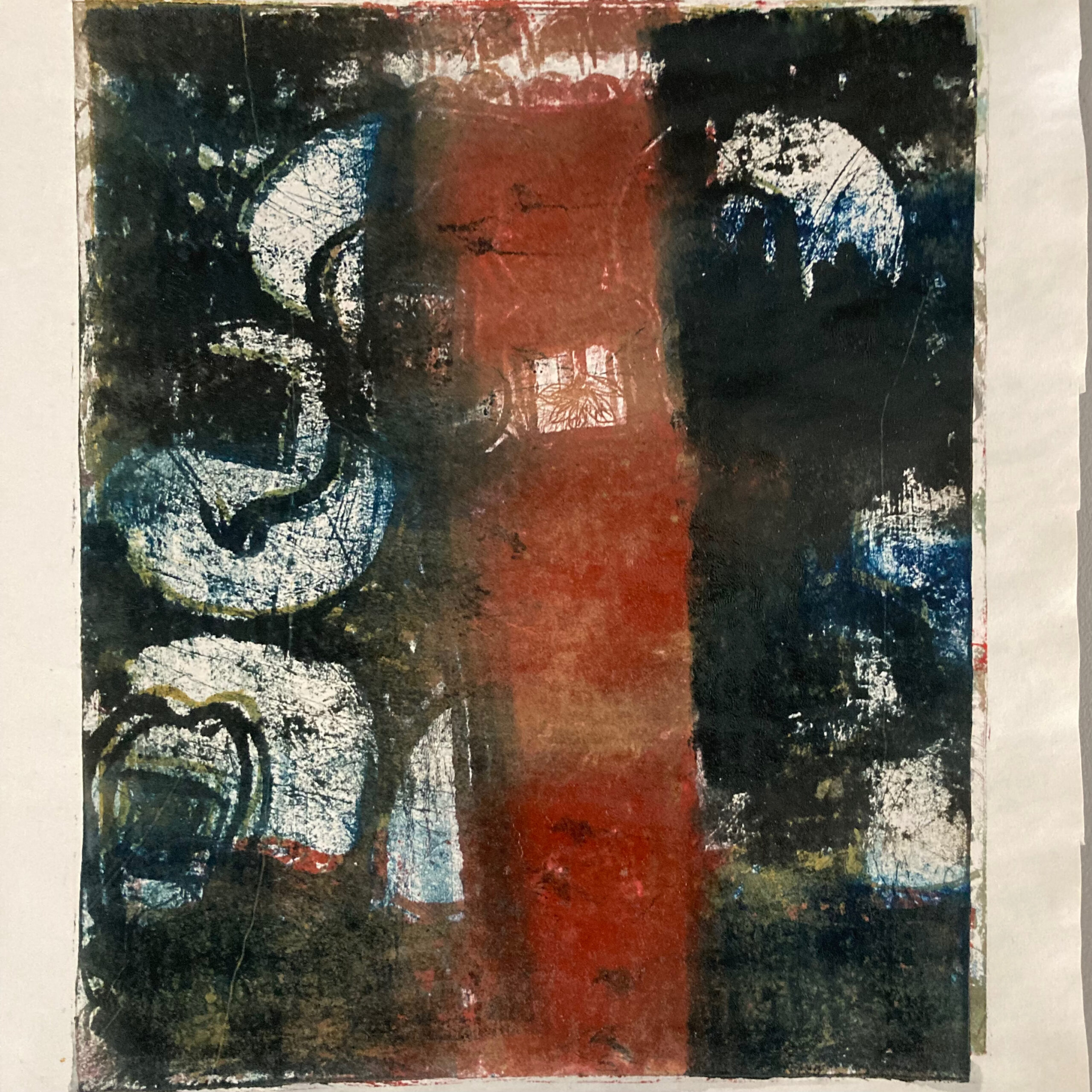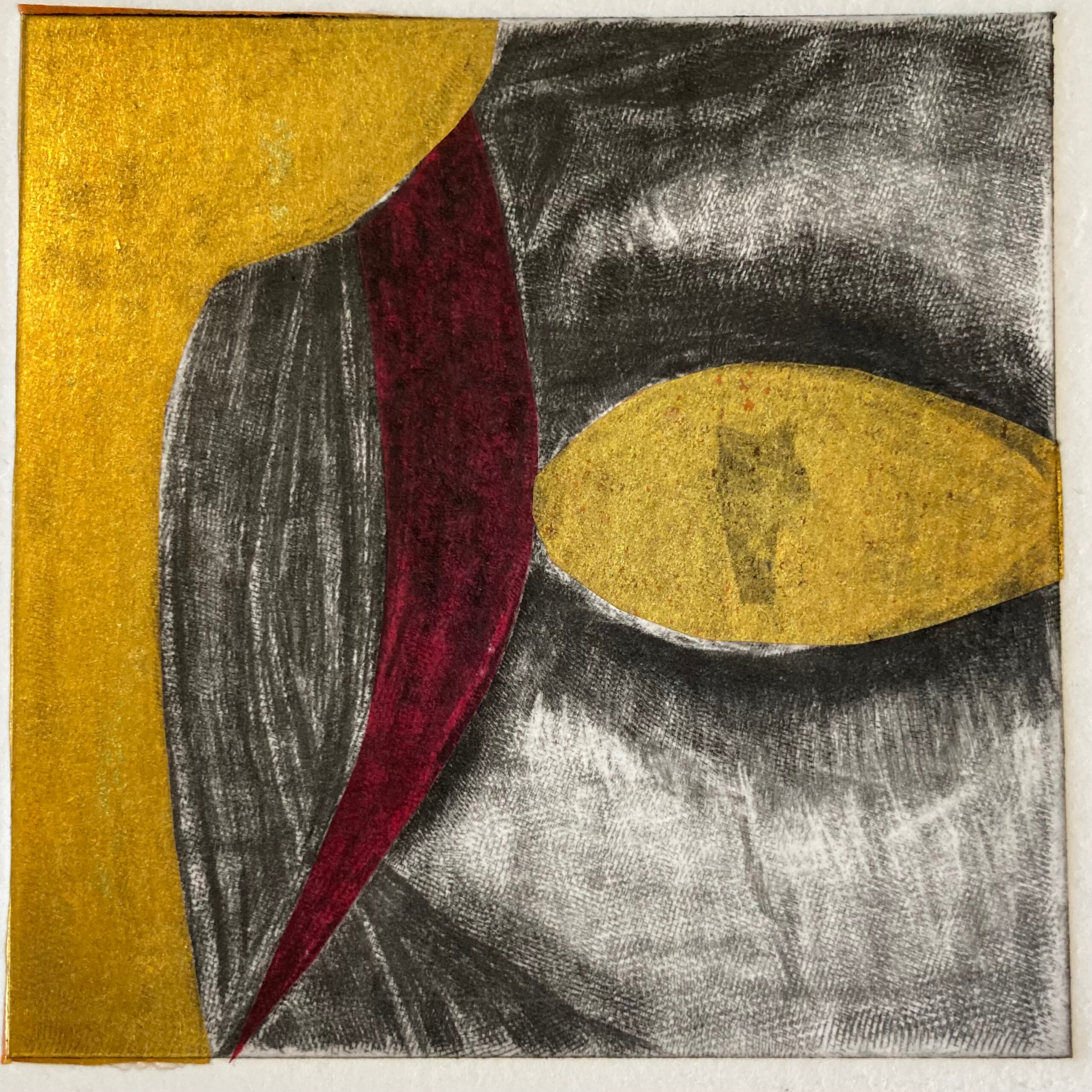 J2.40. Taille douce et « chine collé ». JC, janvier 2026, J2.40. Taille douce et « chine collé » sur zinc. Impressions sur papier aquarelle, 10 x 10 cm.