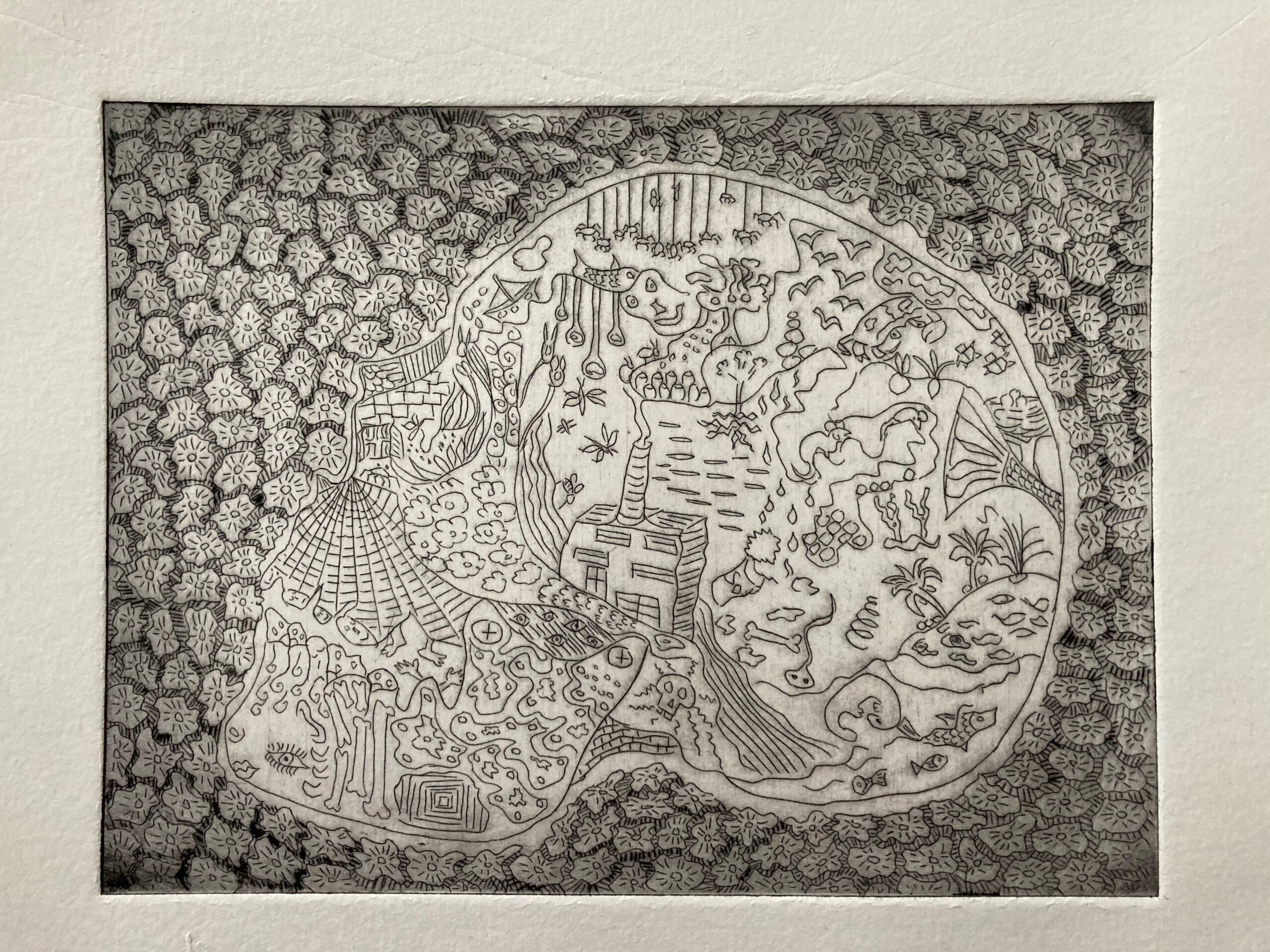 JC, mars 2025, eau-forte et taille douce sur zinc, impression sur papier aquarelle. 15 x 20 cm.